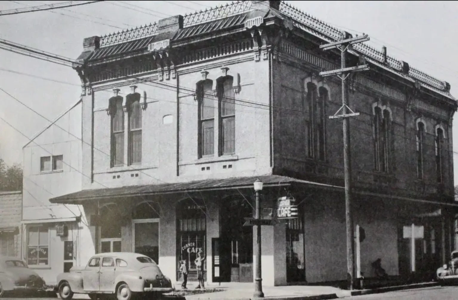 In 1922, shortly after Prohibition laws were being enforced, this corner was transformed into a grocery store. In 1928, the new grocers were Brewen, Coleman & Lucas. In 1931, the Corner Café opened for business with Joe Young in charge. He had come over from China at the age of 30 and had a restaurant in Davis. After his death a year later, his wife continued to operate the café until the business was purchased by Tom Wong in 1936.