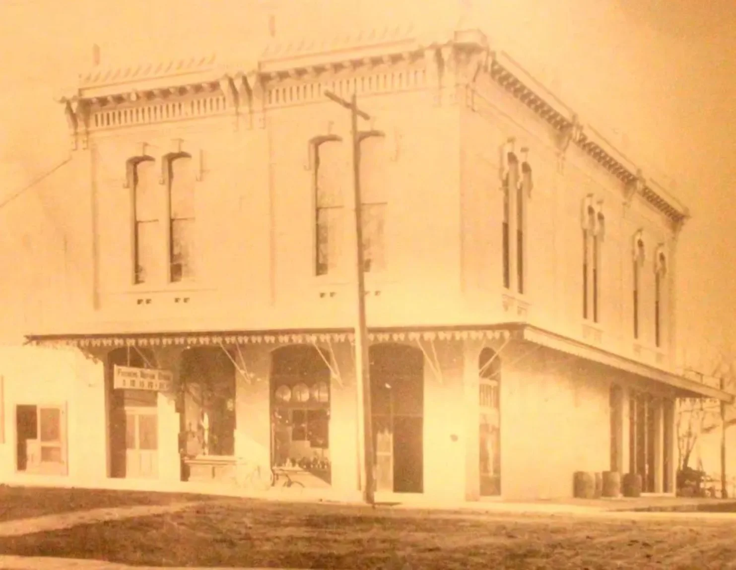 In and around 1870, when most businesses were making the big move from Silveyville to the new town of Dixon, A. Kirby, a young pharmacist for W. A. Trafton, decided to reestablish himself in the new town and chose the southwest corner of First and A Street. The building was moved by huge rollers drawn by mules the distance of about three miles.