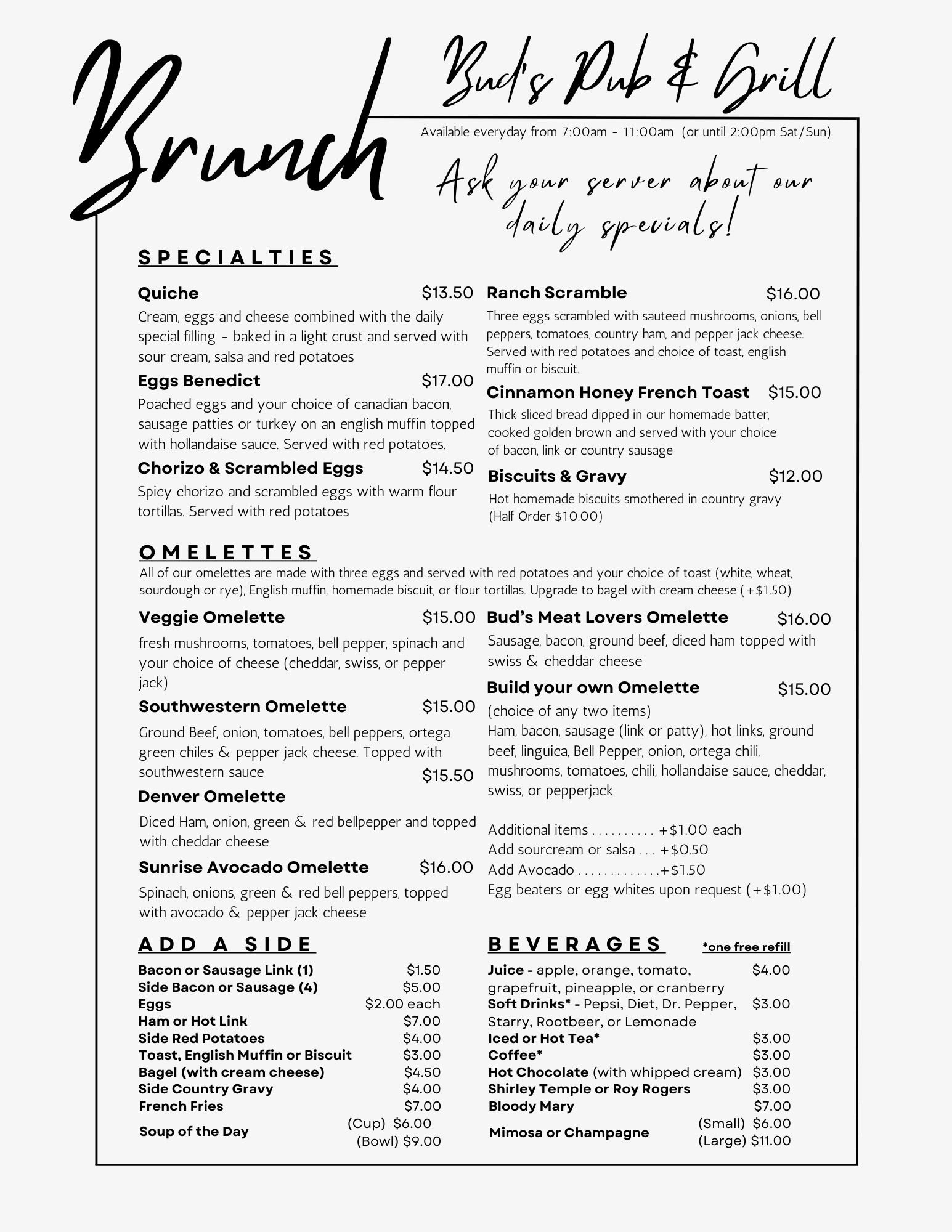 Available from 7:00am - 11:00am (until 2:00pm Sat/Sun)