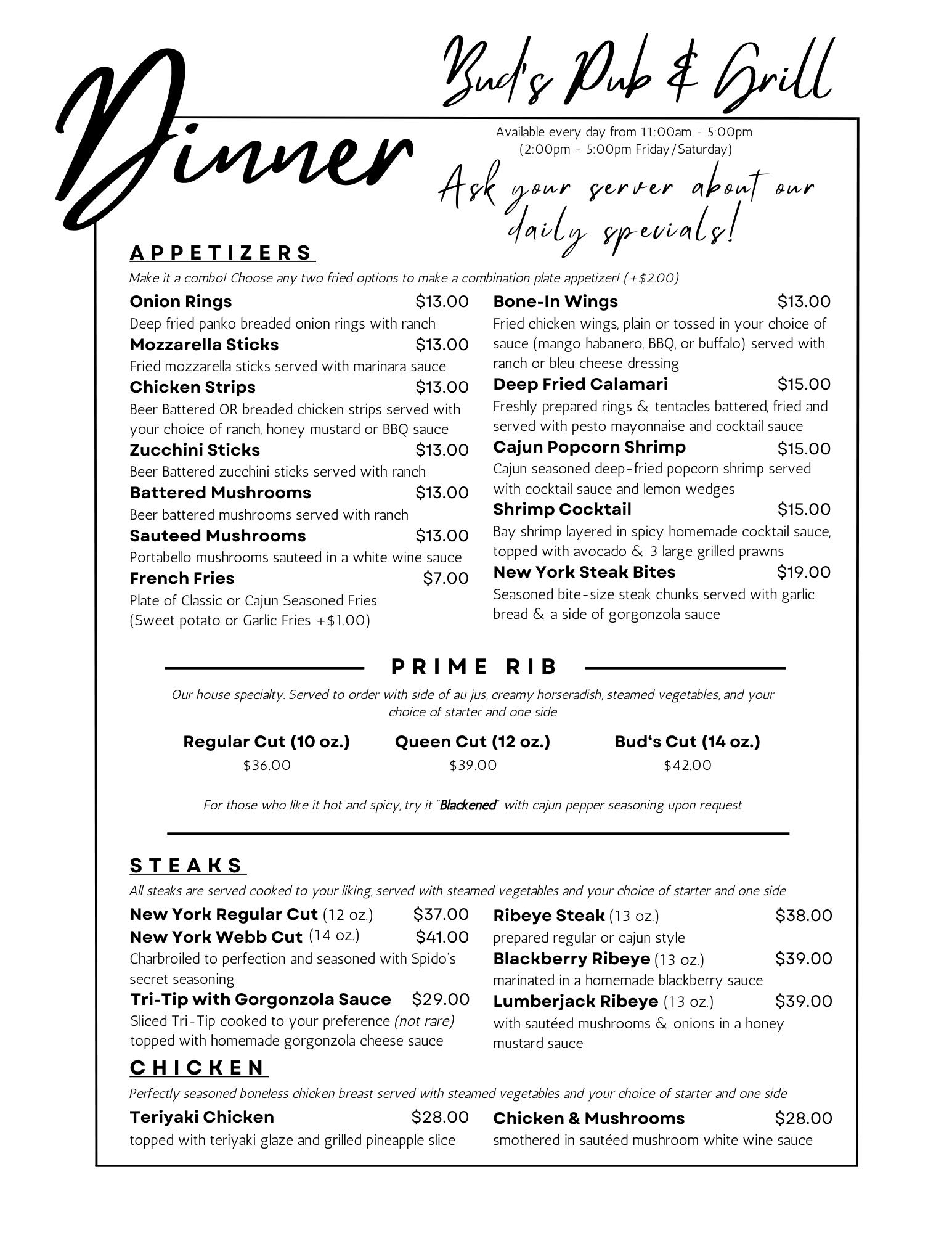 Available after 5:00pm daily